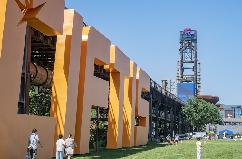9月14日,服貿會觀眾在首鋼園內參觀。