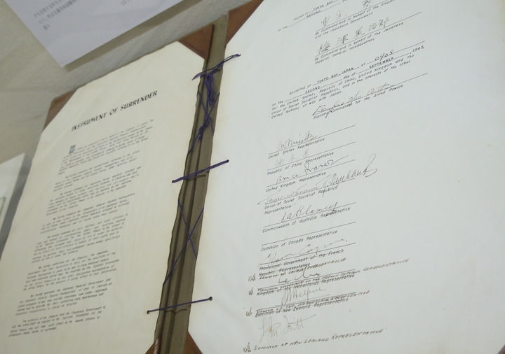 這是2015年9月1日在日本東京外務(wù)省外交史料館內(nèi)拍攝的日本二戰(zhàn)無(wú)條件投降書原件。新華社記者 劉天 攝