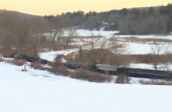 中新網(wǎng)2月6日電 據(jù)美媒報(bào)道,當(dāng)?shù)卣Q,美國東部時間5日上午,一列載有危險化學(xué)品的貨運(yùn)列車在康涅狄格州曼斯菲爾德鎮(zhèn)脫軌,部分車廂滑入附近一條河中。