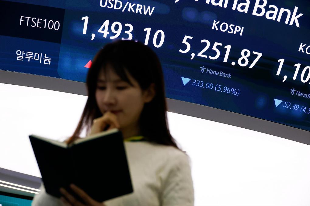 這是3月9日在韓國(guó)首爾一家銀行拍攝的股指顯示屏。新華社發(fā)(全休相攝)