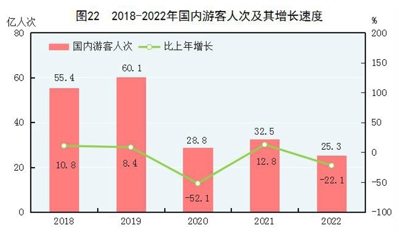全年國(guó)內(nèi)游客25.3億人次,比上年下降22.1%。其中,城鎮(zhèn)居民游客19.3億人次,下降17.7%;農(nóng)村居民游客6.0億人次,下降33.5%。國(guó)內(nèi)旅游收入20444億元,下降30.0%。其中,城鎮(zhèn)居民游客花費(fèi)16881億元,下降28.6%;農(nóng)村居民游客花費(fèi)3563億元,下降35.8%。