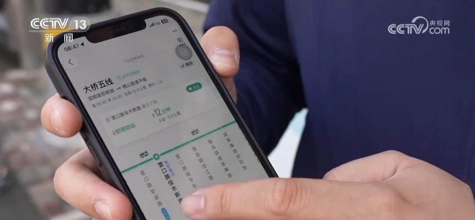 總臺(tái)央視記者 吳天白:除了共享單車(chē)用上了北斗芯片,坐公交車(chē)我們也能體會(huì)到北斗帶來(lái)的便利。通過(guò)車(chē)站的站牌可以看到公交車(chē)的班次。這輛公交車(chē)開(kāi)到哪里了?還有多久到?我們打開(kāi)導(dǎo)航軟件,這些信息一目了然,出門(mén)前就可以合理規(guī)劃時(shí)間,選擇我們的出行交通工具。