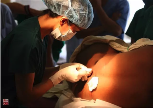2010年11月12日,“和平方舟”號醫(yī)院船麻醉師盛睿芳對沁的母親實施麻醉,準(zhǔn)備剖腹產(chǎn)。新華社記者琚振華攝