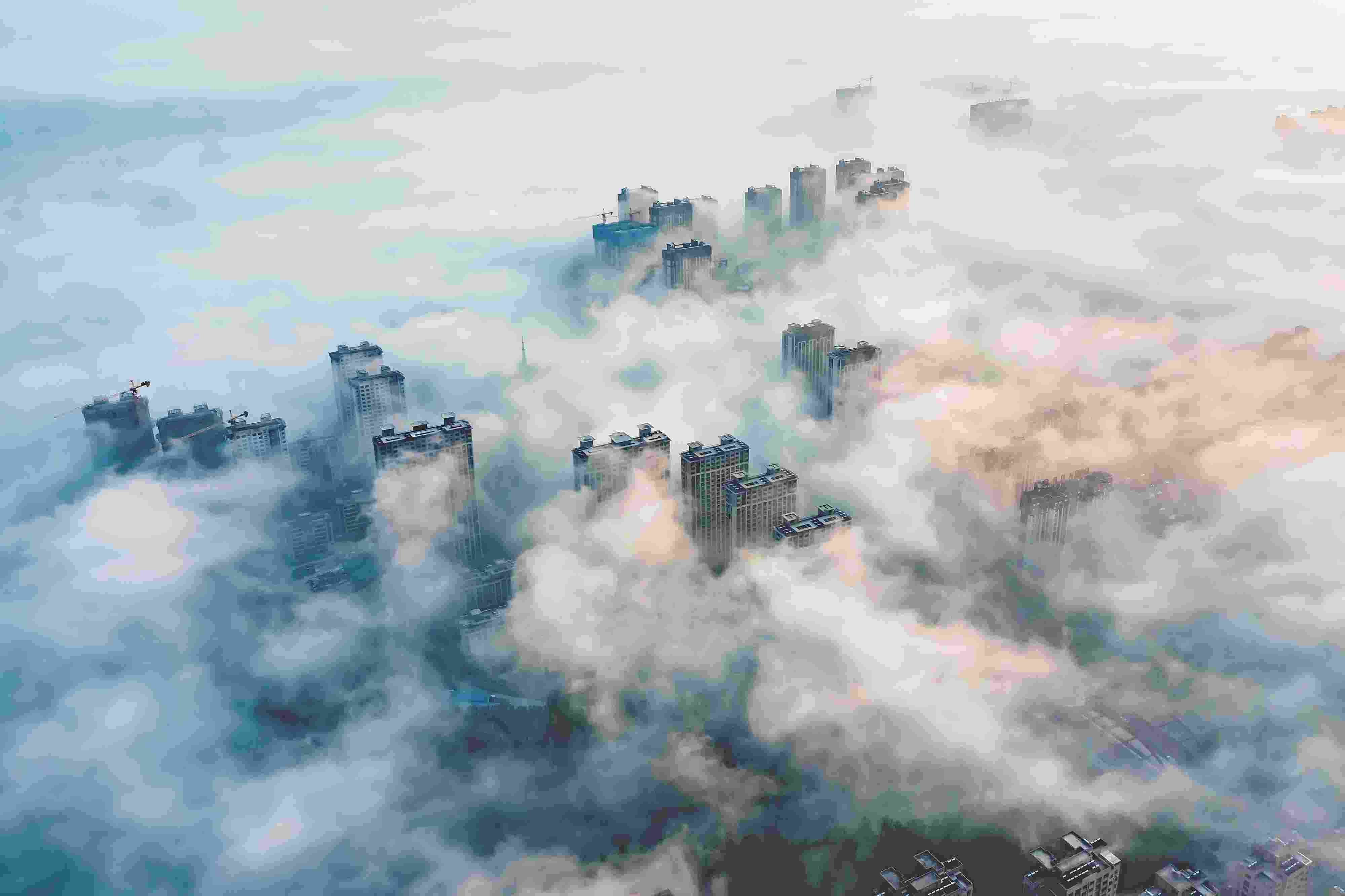 江蘇連云港:城市上空云霧繚繞