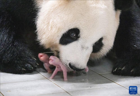 據(jù)韓國京畿道龍仁市愛寶樂園介紹,旅韓大熊貓“愛寶(華妮)”于7月7日清晨順利產(chǎn)下一對雌性雙胞胎幼崽。這是旅韓大熊貓“愛寶(華妮)”和“樂寶(園欣)”繼2020年誕下“福寶”后在韓國再次自然交配并誕下幼崽。