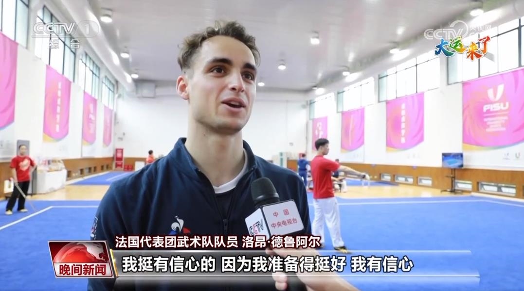 法國代表團武術(shù)隊隊員 洛昂·德魯阿爾:我要比賽的項目是長拳和棍術(shù)。我每天都會訓(xùn)練,一天一般訓(xùn)練兩次。我挺有信心的,因為我準(zhǔn)備得挺好,我有信心。?