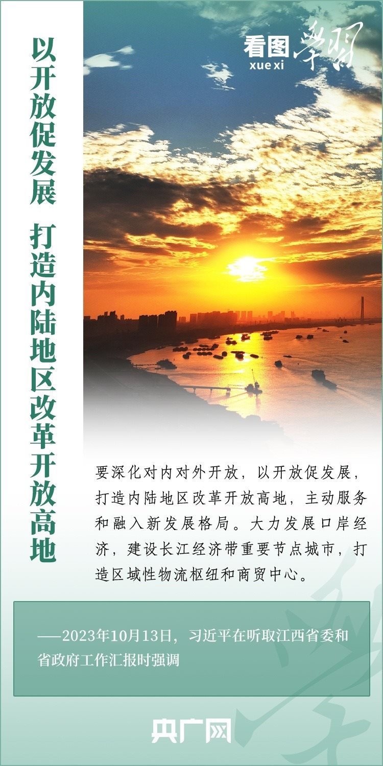 10月10日至13日,習(xí)近平總書記在江西九江、景德鎮(zhèn)、上饒等地,深入長江岸線、企業(yè)、歷史文化街區(qū)、農(nóng)村等進(jìn)行調(diào)研。總書記強(qiáng)調(diào),江西要著眼高質(zhì)量發(fā)展、綠色發(fā)展、低碳發(fā)展等新要求,解放思想、開拓進(jìn)取,揚(yáng)長補(bǔ)短、固本興新,努力在加快革命老區(qū)高質(zhì)量發(fā)展上走在前、在推動(dòng)中部地區(qū)崛起上勇爭先、在推進(jìn)長江經(jīng)濟(jì)帶發(fā)展上善作為,奮力譜寫中國式現(xiàn)代化江西篇章。一起來學(xué)習(xí)!