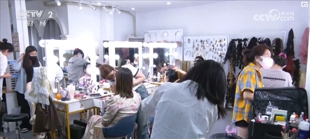 晚上8時,在這家寫真店,仍有不少消費者在做妝造。負責(zé)人介紹,潑水節(jié)期間,他們的客流量比平時多了一倍。