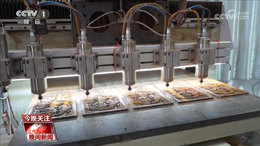 福建省天材古典工藝有限公司總經(jīng)理 黃海聲:這種首飾盒,一年整個(gè)鎮(zhèn)應(yīng)該向海內(nèi)外銷量超過幾十萬(wàn)件。傳統(tǒng)的師傅如果純手工雕刻,至少要花一個(gè)多月的時(shí)間。我們現(xiàn)在通過數(shù)字化的賦能,師傅把樣品做出來(lái)之后,通過數(shù)字化軟件傳輸給我們的機(jī)器然后進(jìn)行雕刻,半天的時(shí)間就能夠生產(chǎn)出來(lái)。機(jī)器設(shè)備也不斷地去優(yōu)化,每刀下去的精度差不多頭發(fā)絲這么細(xì)。