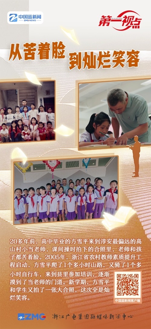 彼時(shí)的浙江,小學(xué)教師的學(xué)歷達(dá)標(biāo)率,在全國(guó)排位倒數(shù)。高中畢業(yè)的農(nóng)村老師方雪平,來到淳安最偏遠(yuǎn)的高山村小。一個(gè)人,要教兩個(gè)年級(jí)20多個(gè)孩子的全部科目。一次課間操時(shí),村小老師拍下的照片,無論是老師還是孩子,一個(gè)個(gè)都苦著臉。方雪平說:“當(dāng)時(shí)(上課時(shí))我心里是很緊張的,緊張到手心冒汗。外出培訓(xùn)的機(jī)會(huì)幾乎是沒有的,自己慢慢去摸索唄?!?/p>