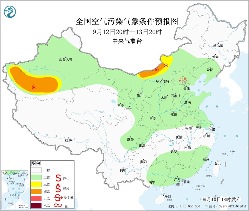 中新網(wǎng)9月10日電 據(jù)中央氣象臺(tái)網(wǎng)站消息,未來一周,全國大部地區(qū)大氣擴(kuò)散條件較好,無明顯霾天氣。13日內(nèi)蒙古中部偏北部分地區(qū)有沙塵天氣。