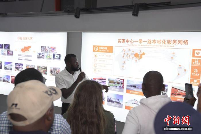 非洲籍工作人員白小龍為代表團講解。 金華市貿(mào)促會 供圖
