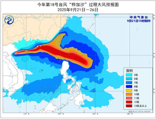 21日起,“樺加沙”的影響漸顯。中央氣象臺預計,今天至26日,巴士海峽、南海北部、北部灣、瓊州海峽等海域及華南沿海將先后有9~11級大風,臺風中心經過的附近海域或地區(qū)有12~17級大風,陣風17級以上。