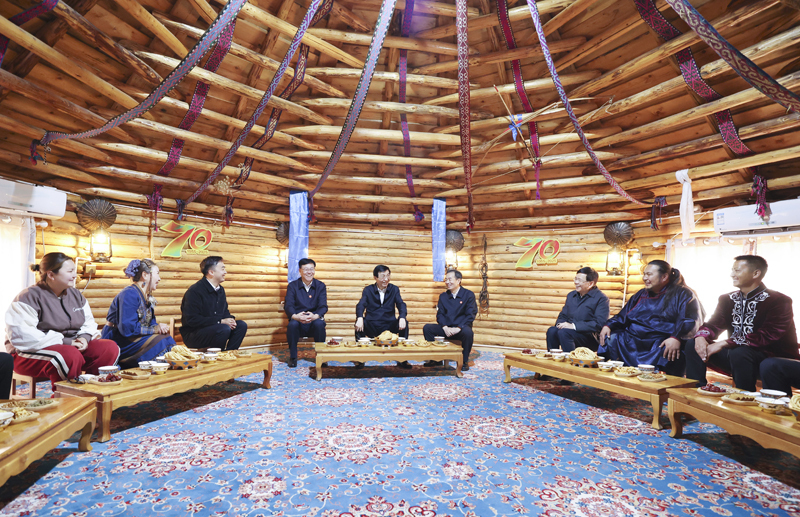 中共中央政治局常委、全國政協(xié)主席、中央代表團團長王滬寧帶領(lǐng)一分團到阿勒泰地區(qū)布爾津縣考察,了解邊防建設(shè)、鄉(xiāng)村旅游、生態(tài)環(huán)境保護等情況,并看望慰問基層干警和村民群眾。王滬寧表示,要把邊防建設(shè)作為重要任務抓緊抓好,加強和創(chuàng)新社會治理,學習運用新時代“楓橋經(jīng)驗”,深入推進興邊富民行動,為各族群眾扎根邊疆、建設(shè)邊疆、守護邊疆創(chuàng)造良好環(huán)境,在促進民族團結(jié)進步、促進邊防鞏固、促進興邊富民中發(fā)揮更大作用。在聽取扎拉特鄉(xiāng)村旅游專業(yè)合作社生產(chǎn)經(jīng)營和當?shù)孛袼孜幕l(fā)展情況介紹時,王滬寧表示,新疆擁有豐富的文化旅游資源,要推動新疆特色文化和旅游資源要素深度融合,提升旅游基礎(chǔ)設(shè)施服務保障能力,讓新疆成為國內(nèi)外游客向往的旅游目的地,把文化旅游業(yè)打造為新疆支柱產(chǎn)業(yè)。在考察喀納斯自然保護區(qū)生態(tài)環(huán)境保護工作時,王滬寧表示,這些年新疆生態(tài)環(huán)境顯著改善,要樹牢綠水青山就是金山銀山理念,推進生態(tài)優(yōu)先、綠色發(fā)展,以高品質(zhì)生態(tài)支撐高質(zhì)量發(fā)展,讓大美新疆天更藍、山更綠、水更清。27日下午,看望慰問活動結(jié)束后,王滬寧帶領(lǐng)一分團乘機返回北京。