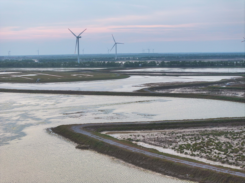 江蘇省鹽城市東臺市條子泥濕地區(qū)域總面積129萬畝。2019年,作為中國黃(渤)海候鳥棲息地(第一期)重要組成部分被列入世界遺產(chǎn)名錄。近年來,條子泥濕地秉承“基于自然的解決方案”理念,開展了川水灣海岸帶生態(tài)保護(hù)項(xiàng)目,并在東臺海堤西側(cè)專門辟出720畝魚塘,打造了國內(nèi)第一塊固定高潮位棲息地。生態(tài)保護(hù)修復(fù)工程的實(shí)施使條子泥一些珍稀物種種群數(shù)量屢創(chuàng)新高,大批的水鳥、成群的麋鹿等野生動物在此“落戶”,濕地修復(fù)初顯成效。
