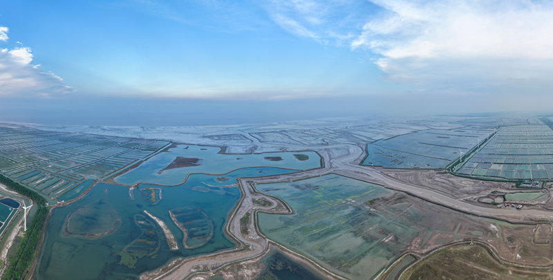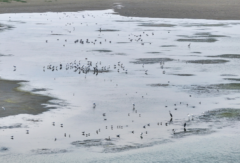 8月25日拍攝的東臺條子泥濕地“720”高潮位棲息地(無人機(jī)照片)。