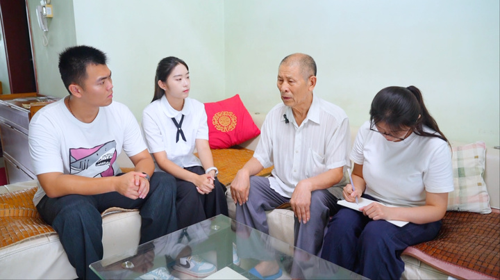 褚慶華向?qū)ぴL團(tuán)講述祖父褚雅青