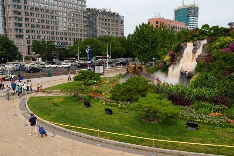 8月26日,人們在北京復興門參觀“美好明天”花壇。