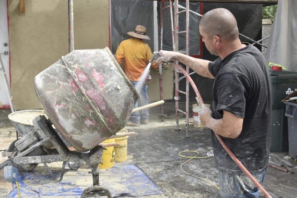 5月7日,建筑工人在美國加州洛杉磯縣蒙羅維亞一處工地工作。新華社記者高山攝