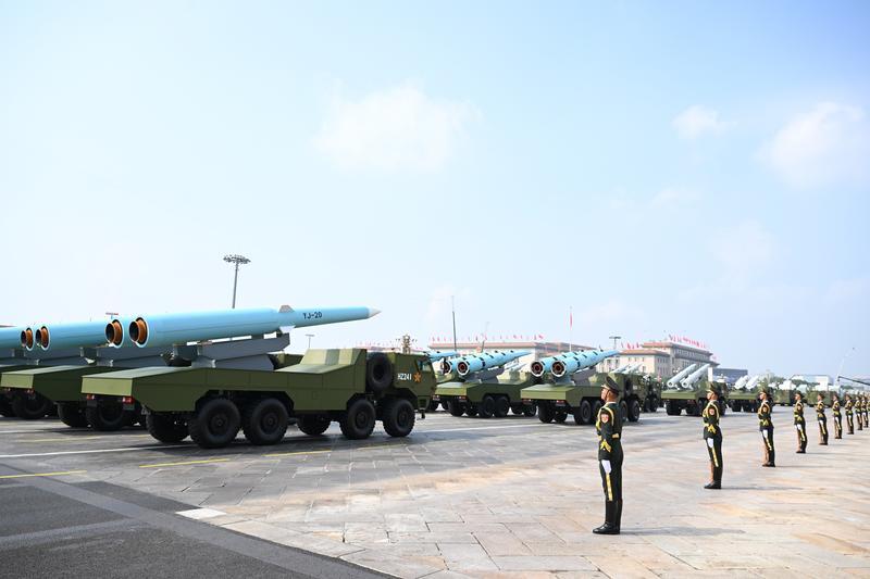 9月3日,紀念中國人民抗日戰(zhàn)爭暨世界反法西斯戰(zhàn)爭勝利80周年大會在北京隆重舉行。這是巡航導(dǎo)彈方隊接受檢閱。