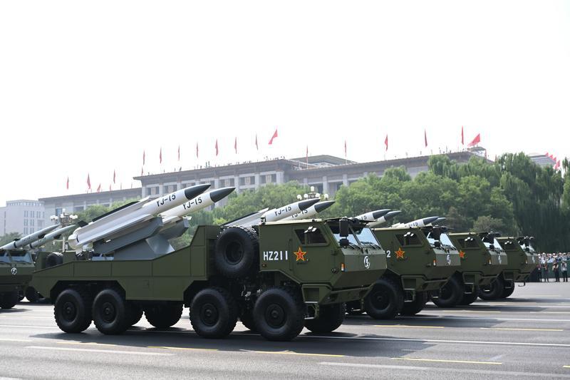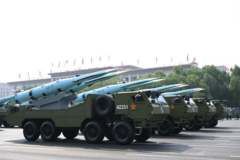 9月3日,紀念中國人民抗日戰(zhàn)爭暨世界反法西斯戰(zhàn)爭勝利80周年大會在北京隆重舉行。這是反艦導(dǎo)彈方隊接受檢閱。