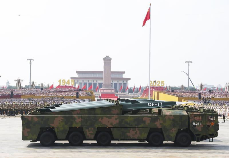 9月3日,紀念中國人民抗日戰(zhàn)爭暨世界反法西斯戰(zhàn)爭勝利80周年大會在北京隆重舉行。這是高超聲速導(dǎo)彈方隊接受檢閱。