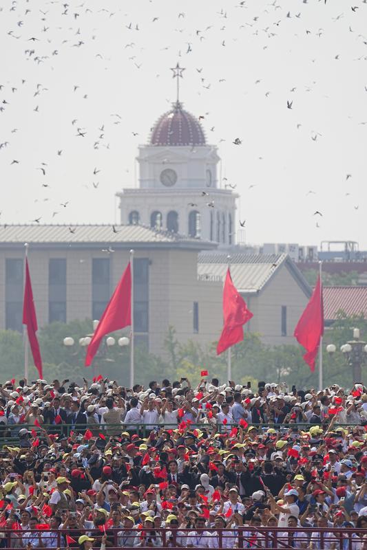 9月3日,紀念中國人民抗日戰(zhàn)爭暨世界反法西斯戰(zhàn)爭勝利80周年大會在北京隆重舉行。這是紀念大會現(xiàn)場放飛和平鴿。