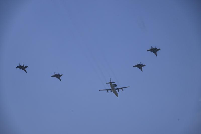 9月3日,紀念中國人民抗日戰(zhàn)爭暨世界反法西斯戰(zhàn)爭勝利80周年大會在北京隆重舉行。這是預(yù)警指揮機梯隊接受檢閱。