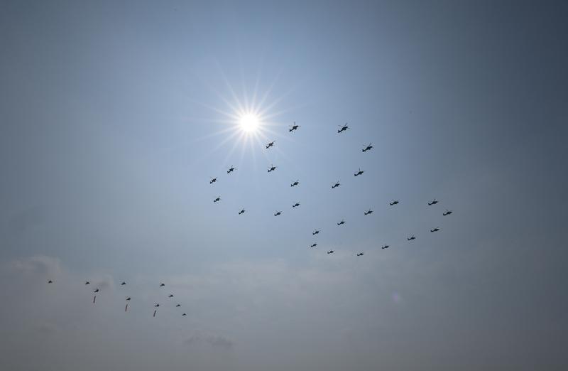 9月3日,紀念中國人民抗日戰(zhàn)爭暨世界反法西斯戰(zhàn)爭勝利80周年大會在北京隆重舉行。這是教練機梯隊接受檢閱。