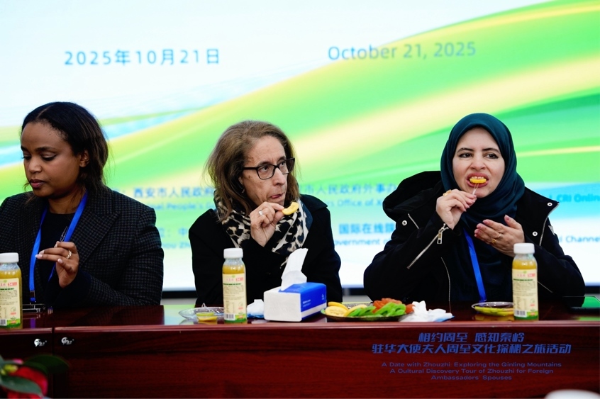 駐華大使夫人品嘗著不同品種的獼猴桃以及各式各樣的獼猴桃深加工食品,紛紛稱贊其細膩的口感、獨特的風(fēng)味和濃郁的果香?!斑@不僅是一次味覺的享受,更是一次對中國鄉(xiāng)村產(chǎn)業(yè)振興的直觀感受?!蹦β甯珩v華大使夫人表示,“我非常期待后續(xù)可以和周至合作,因為摩洛哥很喜歡這種水果,我也希望可以在這里學(xué)到一些產(chǎn)業(yè)發(fā)展的知識,并把這些知識帶回我們國家?!?/p>