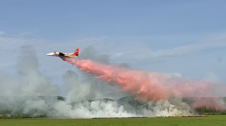 我國(guó)經(jīng)過三年自主攻關(guān)研制出的新舟60滅火飛機(jī)滅火實(shí)戰(zhàn)場(chǎng)景。新舟60滅火飛機(jī)最大載水量6噸,滿載作業(yè)半徑600公里,填補(bǔ)了森林草原滅火大飛機(jī)的空白和短板。應(yīng)急管理部供圖