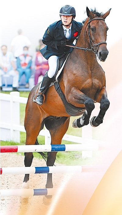 9月21日,湖北隊(duì)選手陳柏良在第十五屆全國運(yùn)動(dòng)會(huì)現(xiàn)代五項(xiàng)馬術(shù)比賽中。