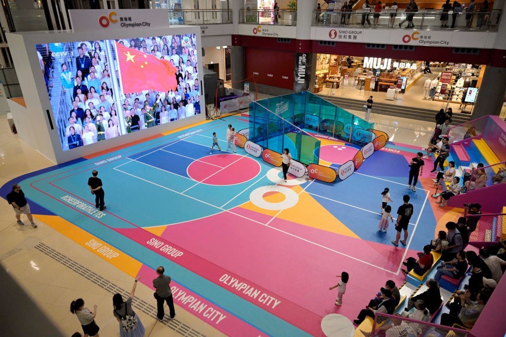 11月9日,第十五屆全國運(yùn)動(dòng)會(huì)開幕式在廣東奧林匹克體育中心舉行,這是香港市民在一家商場(chǎng)內(nèi)觀看直播。新華社發(fā)(盧炳輝 攝)