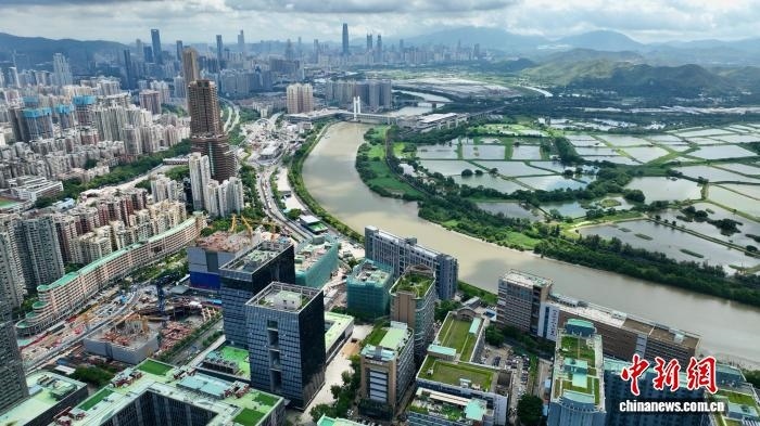 資料圖:圖為2022年7月7日拍攝的俯瞰河套深港科技創(chuàng)新合作區(qū)。(無人機照片) 中新社記者 陳文 攝