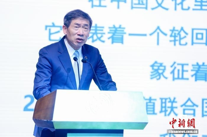 11月13日,聯(lián)合國(guó)開發(fā)計(jì)劃署(UNDP)在北京舉辦成立60周年招待會(huì)。圖為聯(lián)合國(guó)副秘書長(zhǎng)、聯(lián)合國(guó)開發(fā)計(jì)劃署代理署長(zhǎng)徐浩良致辭,呼吁各方秉持團(tuán)結(jié)精神,拿出更大決心,應(yīng)對(duì)全球發(fā)展挑戰(zhàn)。(UNDP供圖)