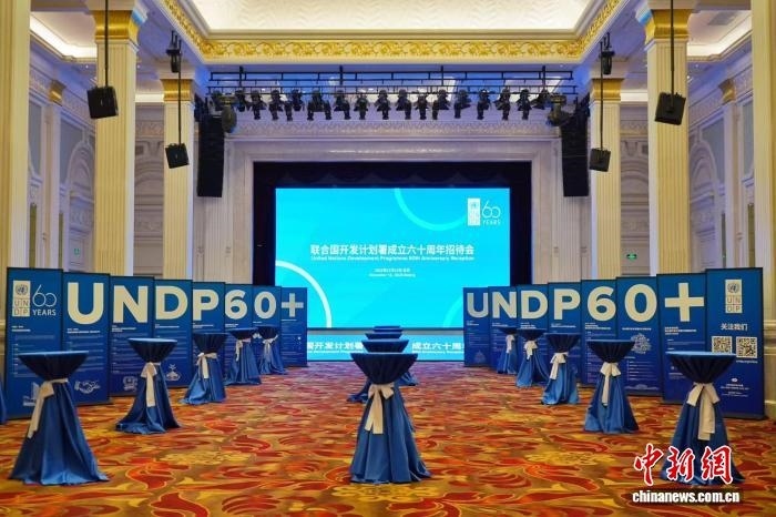 11月13日,聯(lián)合國(guó)開發(fā)計(jì)劃署在北京舉行成立60周年招待會(huì),回顧在華合作歷程,重申將繼續(xù)深化合作,攜手推動(dòng)可持續(xù)發(fā)展。圖為招待會(huì)現(xiàn)場(chǎng)。(UNDP供圖)
