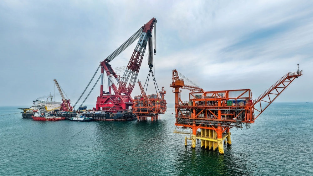 9月8日,墾利6-1油田10-1北區(qū)塊Ⅱ期開(kāi)發(fā)項(xiàng)目油氣平臺(tái)在渤海海域完成海上安裝(無(wú)人機(jī)照片)。新華社發(fā)(杜鵬輝 攝)