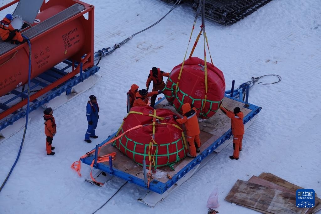 據(jù)悉,“雪龍2”號(hào)正采取“白天空吊、夜晚冰運(yùn)”的節(jié)奏開(kāi)展物資和燃油卸運(yùn),白天利用直升機(jī)吊掛油囊,夜間趁低溫海冰承載力較好時(shí)開(kāi)展冰面車輛雪橇運(yùn)輸。