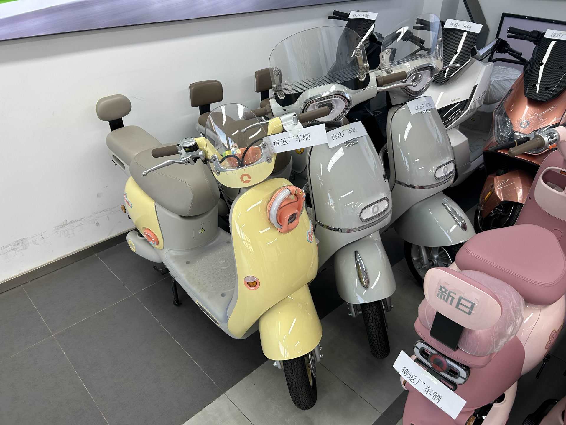 新日電動車店,擺著不少待返廠的老國標(biāo)車