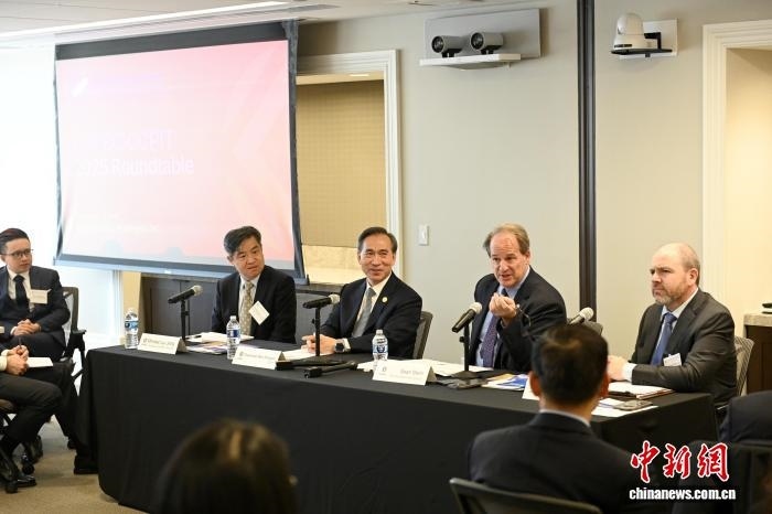 當(dāng)?shù)貢r間12月3日,華盛頓,中國貿(mào)促會組織中國企業(yè)家代表團(tuán)與美中貿(mào)易全國委員會及其會員企業(yè)交流座談。中新社記者 陳孟統(tǒng) 攝