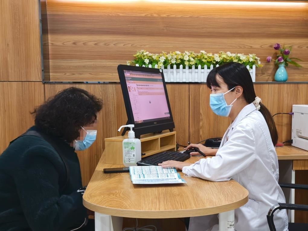 西安交通大學(xué)第二附屬醫(yī)院健康管理部醫(yī)師楊楠為患者解讀體檢項(xiàng)目。新華社發(fā)