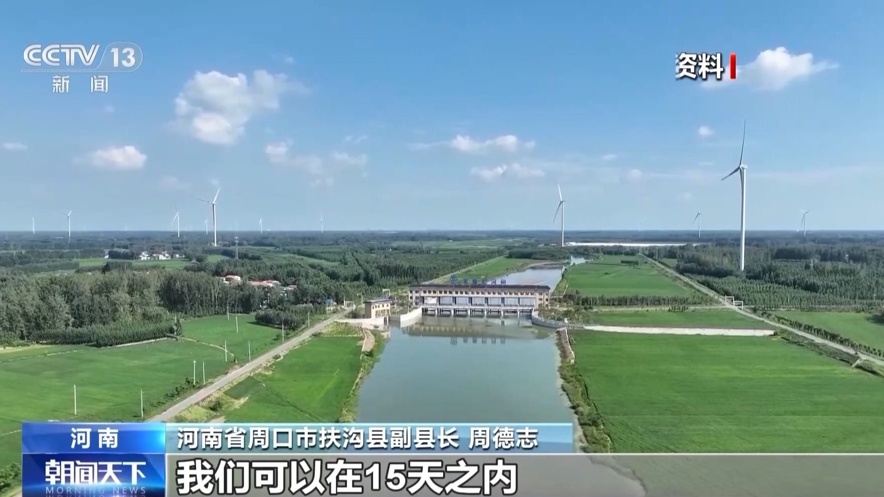 河南省周口市扶溝縣副縣長 周德志:發(fā)生旱情的時(shí)候,我們可以在15天之內(nèi),把全縣的干支渠蓄滿水,最高時(shí)候可達(dá)到7000萬立方米,有效緩解旱情。汛情的時(shí)候,我們兩天之內(nèi)可以把田里的水全部排空,真正能做到旱能澆,澇能排。