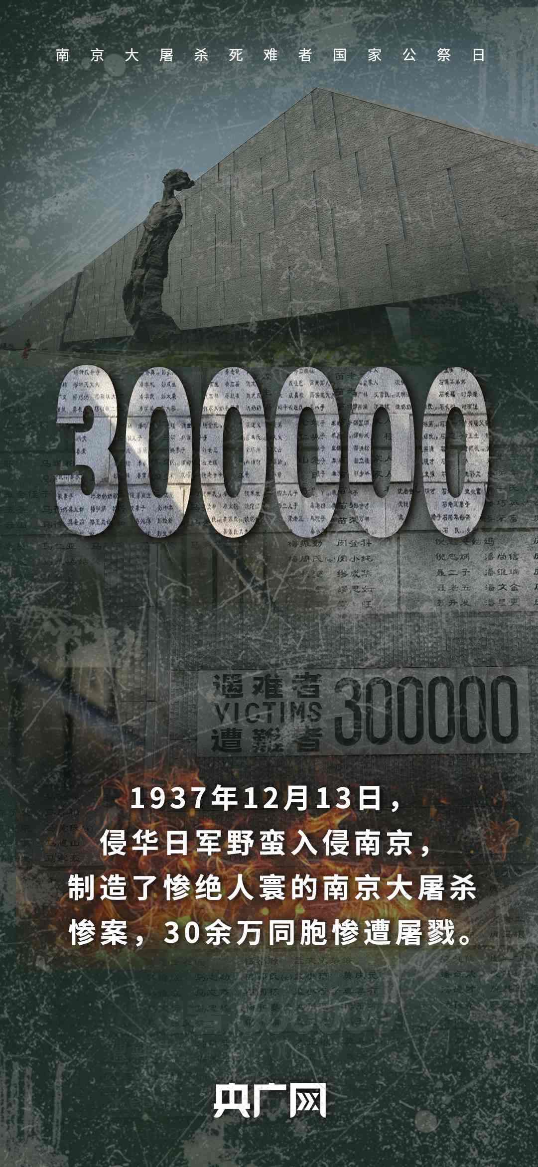 今天(12月13日)是第十二個南京大屠殺死難者國家公祭日。88年前,侵華日軍制造了慘絕人寰的南京大屠殺,這是一場持續(xù)40多天的人間浩劫,30多萬同胞罹難……每一個數(shù)字,都在提醒著我們,曾經(jīng)的血與淚,不能忘,不敢忘!銘記歷史,珍愛和平,吾輩自強!