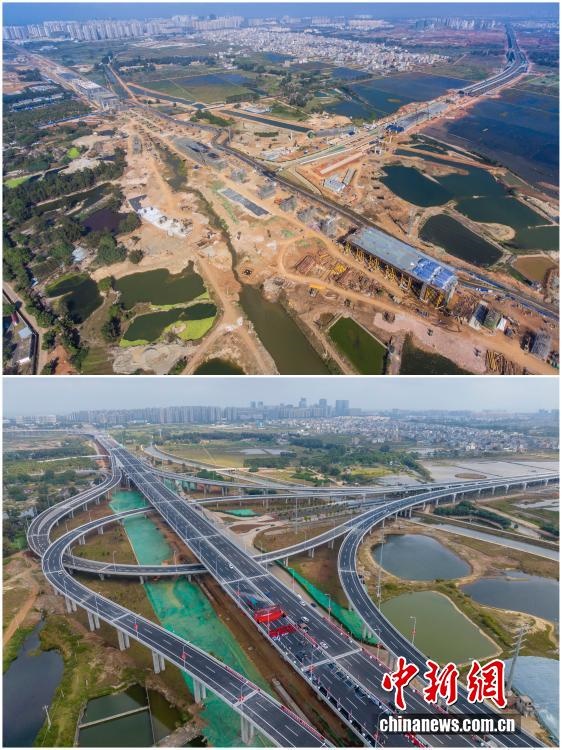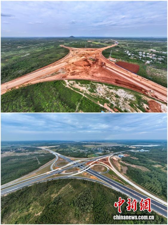 2025年12月18日,海南自由貿(mào)易港正式啟動全島封關。近年來,海南自貿(mào)港建設在利好政策帶動下不斷刷新“自貿(mào)港速度”,一個個重大項目、重點園區(qū)拔地而起,直觀呈現(xiàn)海南自貿(mào)港的蓬勃生機。這里正成為中國對外開放的新前沿、互利合作的新熱土和推動經(jīng)濟全球化的新引擎。上資料圖為2021年2月6日正在建設中的G15沈海高速公路??诙雾椖亢P慊ネ?,下資料圖為2022年12月28日G15沈海高速公路海口段建成通車。(拼版圖,無人機照片)