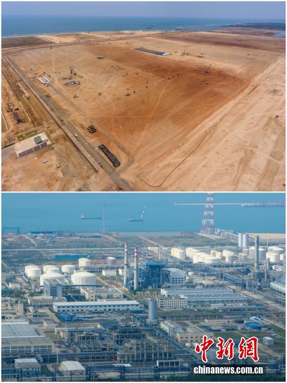 2025年12月18日,海南自由貿(mào)易港正式啟動全島封關。近年來,海南自貿(mào)港建設在利好政策帶動下不斷刷新“自貿(mào)港速度”,一個個重大項目、重點園區(qū)拔地而起,直觀呈現(xiàn)海南自貿(mào)港的蓬勃生機。這里正成為中國對外開放的新前沿、互利合作的新熱土和推動經(jīng)濟全球化的新引擎。上資料圖為2020年5月27日位于洋浦經(jīng)濟開發(fā)區(qū)的海南煉化百萬噸乙烯項目建設地塊,下資料圖為2025年12月12日已經(jīng)投產(chǎn)的海南煉化百萬噸乙烯項目。(拼版圖,無人機照片)