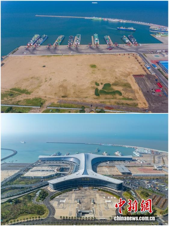 2025年12月18日,海南自由貿(mào)易港正式啟動全島封關。近年來,海南自貿(mào)港建設在利好政策帶動下不斷刷新“自貿(mào)港速度”,一個個重大項目、重點園區(qū)拔地而起,直觀呈現(xiàn)海南自貿(mào)港的蓬勃生機。這里正成為中國對外開放的新前沿、互利合作的新熱土和推動經(jīng)濟全球化的新引擎。上資料圖為2018年9月29日的??谛潞L裝碼頭客運綜合樞紐站項目建設地塊,下資料圖為2025年12月5日已投入使用的??谛潞L裝碼頭客運綜合樞紐站。(拼版圖,無人機照片)