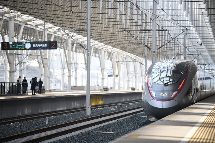 冬日暖陽,灑向延安火車站的站臺。26日10時許,“復(fù)興號”智能動車組列車駛出站臺,向著關(guān)中平原飛馳而去,縈繞在老區(qū)幾代人心中的高鐵夢照進(jìn)現(xiàn)實(shí)。