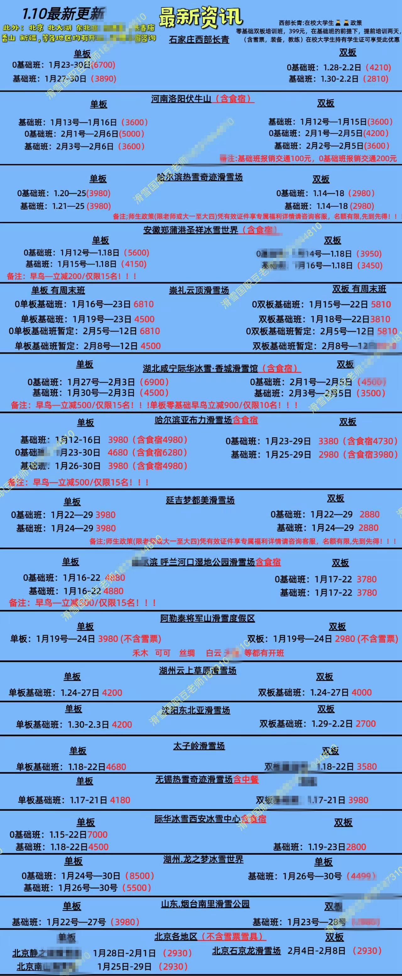 記者以“零基礎(chǔ)”滑雪者想要報(bào)考“滑雪國(guó)職五級(jí)”為由,咨詢了多家滑雪培訓(xùn)機(jī)構(gòu)。一位培訓(xùn)基地的豆先生展示了多個(gè)能提供培訓(xùn)的雪場(chǎng)名單,涉及河北石家莊、河南洛陽(yáng)、湖北咸寧、黑龍江哈爾濱等多地。當(dāng)記者表示北京及周邊雪場(chǎng)更加方便時(shí),豆先生隨即發(fā)來(lái)了包含培訓(xùn)班日期、地點(diǎn)、價(jià)格等一系列報(bào)名細(xì)則的“國(guó)職教練證考試資訊”。