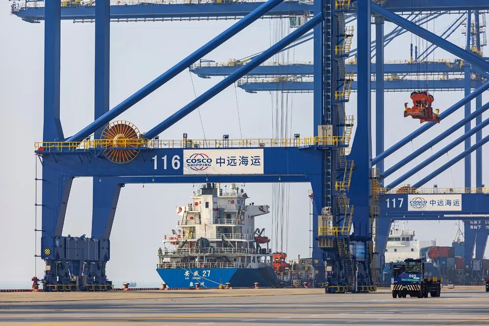 圖為1月16日的洋浦國際集裝箱碼頭。(中國外文局歐亞中心記者段崴 攝)