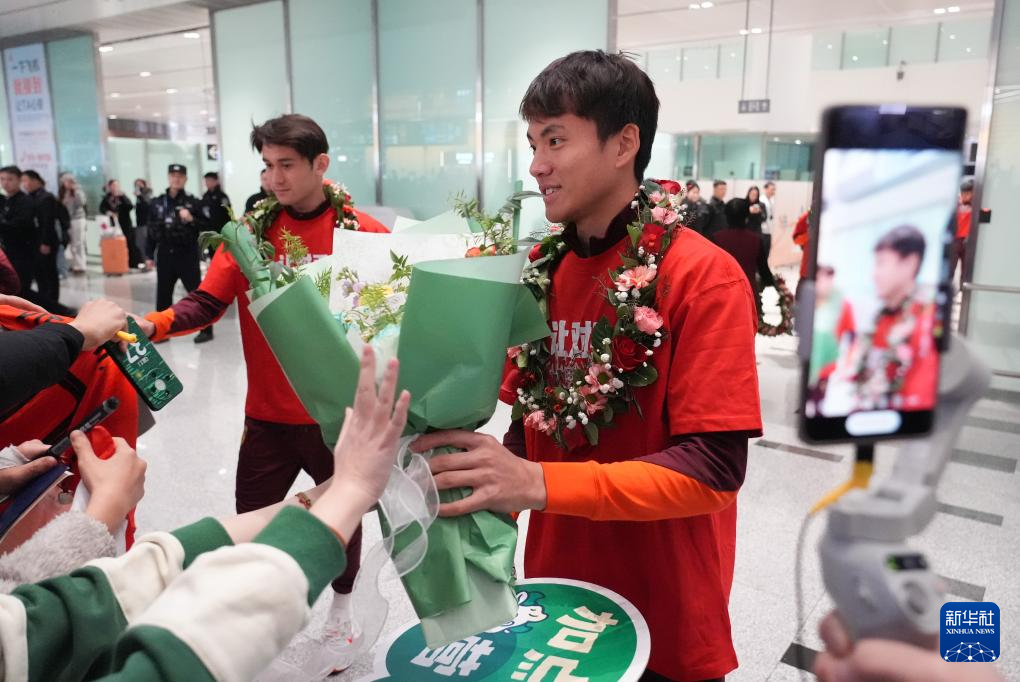 1月26日,在沙特阿拉伯奪得U23男足亞洲杯亞軍的中國隊抵達(dá)北京大興國際機(jī)場。